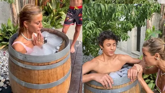 Ünlü sunucu ve manken Çağla Şıkel, soğuk korkusunu yenmek için oğlu Kuzey ile birlikte buz dolu bir fıçıya girdi. Bu anları sosyal medyada paylaşan Şıkel, takipçilerinden büyük ilgi gördü.