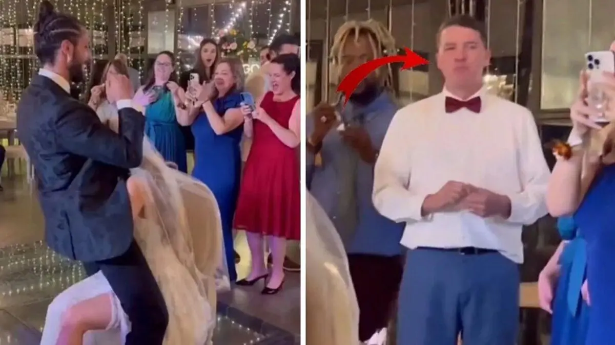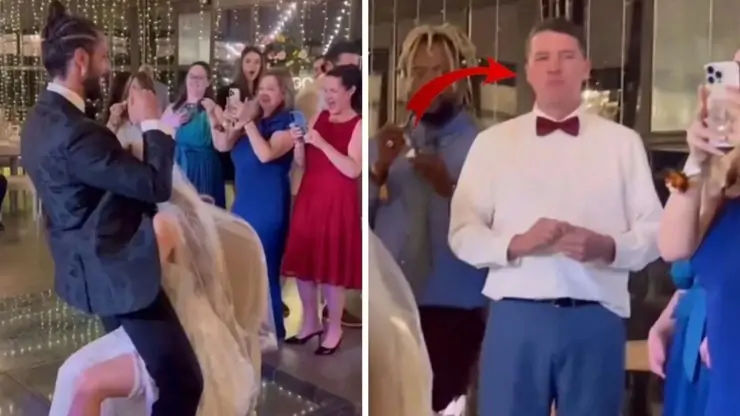 Sosyal medyada paylaşılan ilginç düğün videosunda gelin ve damadın dans gösterisi sırasında sergiledikleri tuhaf figürler gelinin babasının tepkisini çekti.