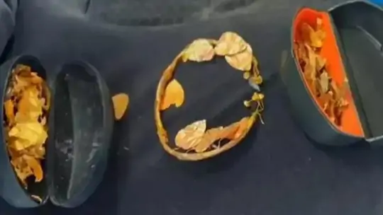 Denizli'de tarihi eser kaçakçılığı operasyonu! Jandarma, altın taç ve sikkeleri ele geçirdi. İki kişi gözaltına alındı, biri tutuklandı. Altın parçalar Milattan Önce Helenistik Dönem'e ait.
