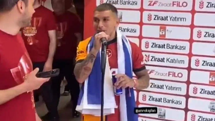 Galatasaray'ın yıldız oyuncusu Lucas Torreira, mikrofonu eline alarak "Okan Buruk istifa..." dedi. Bu sözler takım arkadaşları arasında gülüşmelere neden oldu ve sosyal medyada hızla yayıldı.