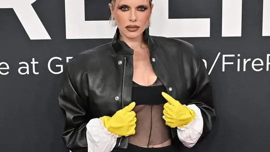 Oyuncu ve model olarak tanınan Fox, kıyafetini sarı mutfak eldivenleri ve koyu siyah botlarla tamamladı. Saçlarını platin sarısı bir tonla şekillendiren Julia, dumanlı göz makyajı ve koyu ruj tercih ederek dramatik bir görünüm elde etti.