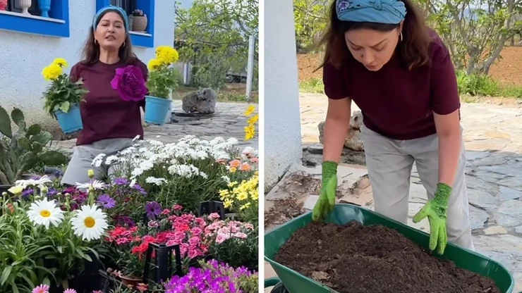 Nurgül Yeşilçay, sevgilisi Necati Kocabay ile İzmir'in bir köyüne taşınarak organik yaşama adım attı; bahçesine çiçek ektiği anları sosyal medyasından paylaşınca takipçileri büyük ilgi gösterdi.