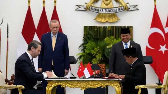 Cumhurbaşkanı Erdoğan ile Endonezya Cumhurbaşkanı Subianto'nun 64 maddelik ortak beyanıyla Türkiye ve Endonezya arasındaki stratejik işbirliği güçlendirilecek. İkili ticaret hedefi 10 milyar dolar olarak belirlendi. Savunma sanayisi alanında ortak projeler ve eğitim işbirliği planlanıyor.